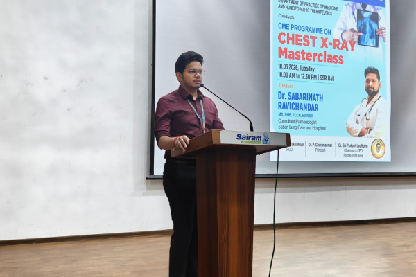 The Department of Practice of Medicine and Homoeopathic Therapeutics at Sri Sai Ram Homoeopathy Medical College and Research Centre conducted a CME Programme on “Chest X-Ray – Masterclass.” at SSR Hal on 10/03/26
