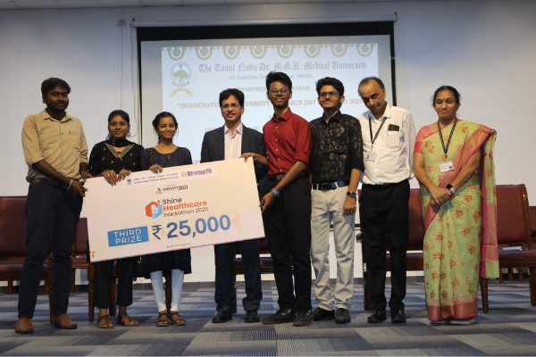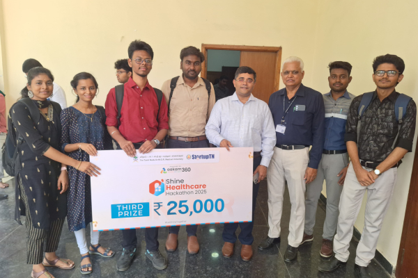 Once again Team NEUROTRONIX (Students of BHMS II Year Ms Deepika, Ms Tejasree, Mr Gowtham) under the mentorship of Dr. Sundarapandiyaraj S has secured a place in the Top 3 out of 48 teams* at the Team Shine – Healthcare Hackathon 2025, hosted by The Tamil Nadu Dr. M.G.R. Medical University, Chennai on 26. 09. 2025